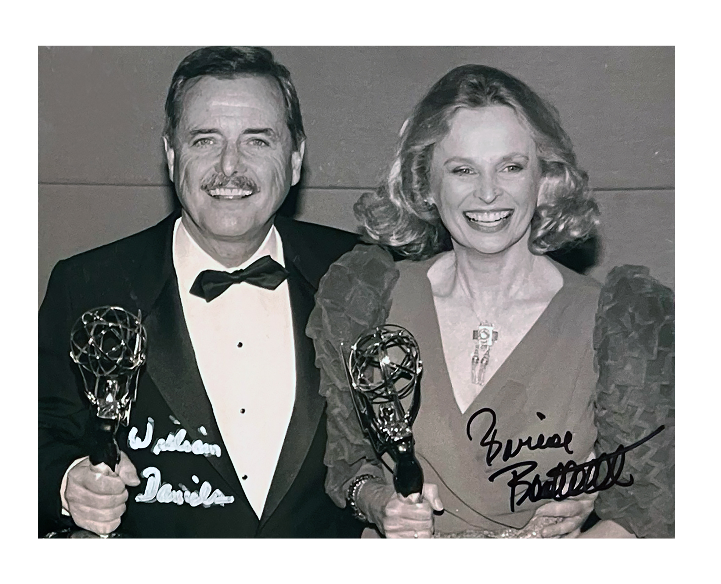 8″ x 10″ Autographed Picture of William Daniels and Bonnie Bartlett at the 1986 Emmy Awards, where they scored wins for Best Actor and Best Supporting Actress for their roles on St. Elsewhere.